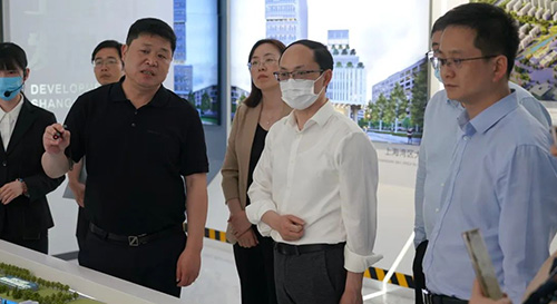 吳能武一行人首先參觀了上海灣區(qū)科創(chuàng)中心展廳,灣區(qū)科創(chuàng)公司負責人就科創(chuàng)中心的總體規(guī)劃、未來城市設計以及院校合作等板塊進行了詳細介紹。